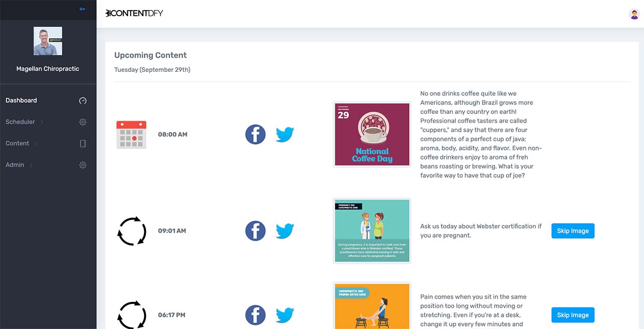 Turn your social media accounts and pages into lead generating profit centers. With just 15 minutes of setup you can have an entire year’s worth of daily and holiday social media content scheduled. Leaving you more time to work on your business daily.